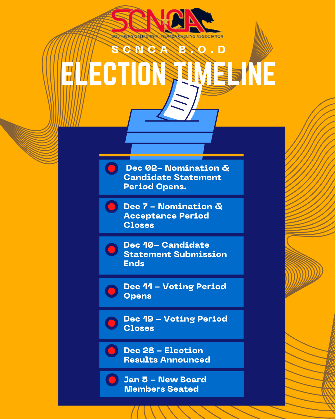 The SCNCA is conducting annual elections for 2026. Details on this election can be found in the link below. This includes Schedules, Voting process, Nomination / Self Nomination forms, Eligibility form, and more.